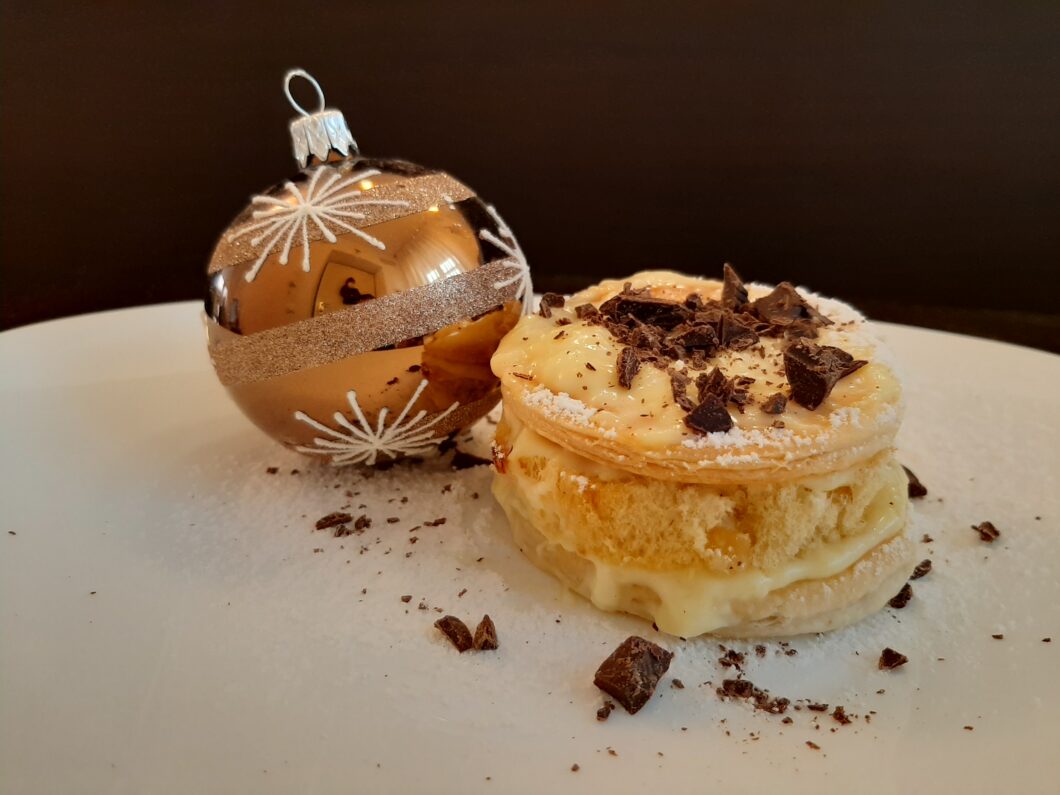 La foto dell’articolo rappresenta il dolce che ho voluto chiamare “delizia di Natale” Si tratta di uno strato di pasta sfoglia (alla base), alternato a crema chantilly, in mezzo una fetta di pandoro o panettone (a piacere), nuovamente crema e per chiudere ancora uno strato di sfoglia….zucchero a velo e la delizia è pronta. Non mi sento di chiamarlo “dolce” vista la facilità nella sua preparazione…ma spero possiate trovarla una ricetta facile da preparare per voi, per le vostre famiglia e per chi vi è caro.
