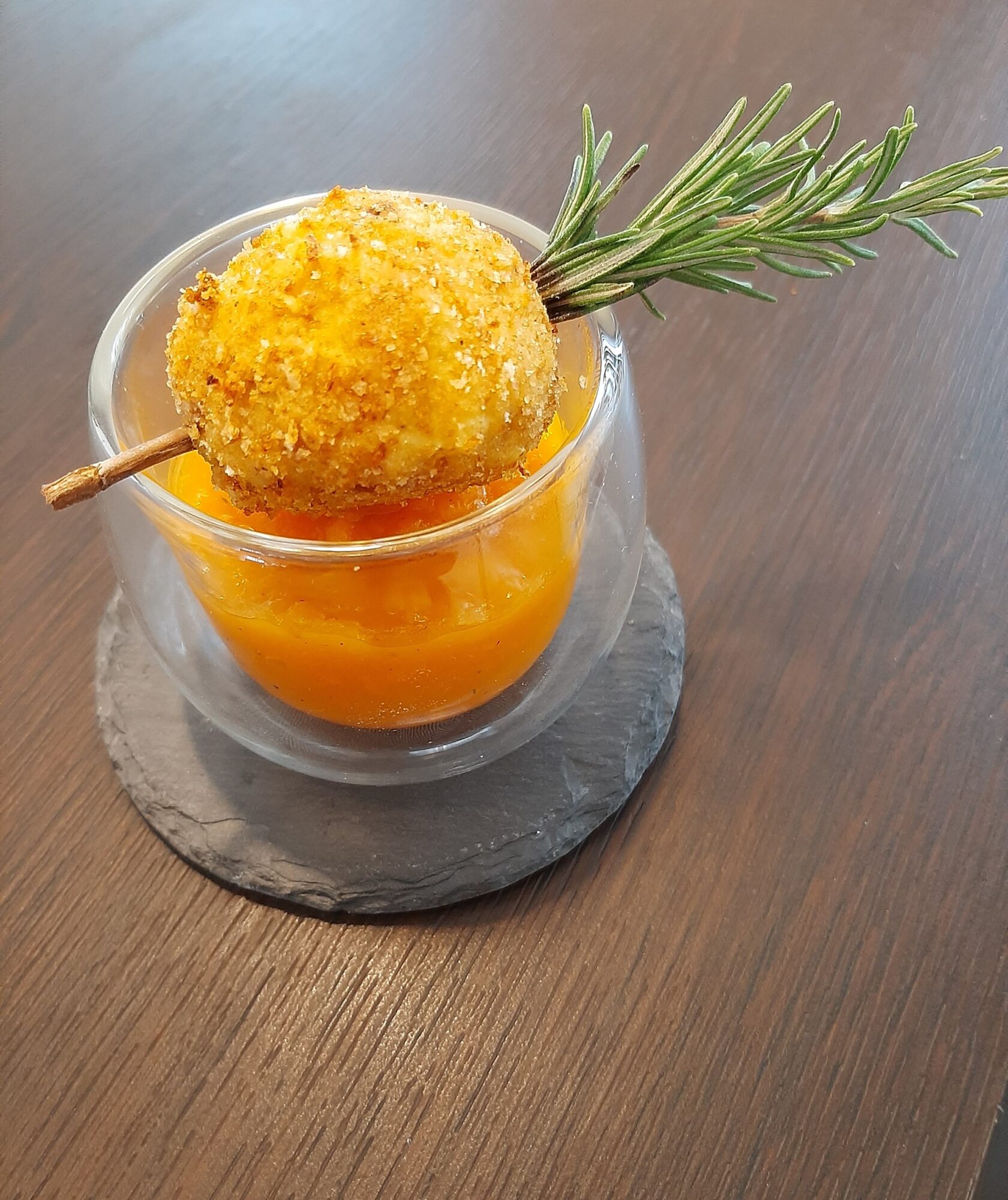 - cuocete la zucca allo stesso modo del cavolfiore (sempre 25 minuti a 180 gradi). Potete cuocere il cavolfiore e la zucca nello stesso momento. Mettete la zucca nel minipimer ed emulsionate creando una crema. Aggiungete un filo di olio, sale e pepe. La crema servirà da base o, come nel mio caso, la potrete riporre in un piccolo bicchiere;