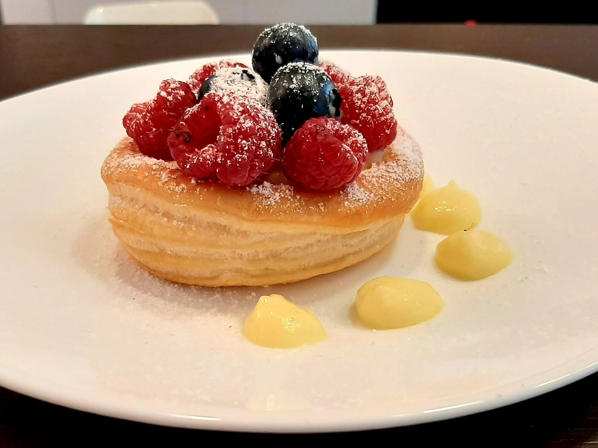 • potete passare alla composizione dei vostri cestini: riempiteli con la crema pasticcera e posizionate sopra i frutti di bosco. Terminate con una spolverata di zucchero a velo.