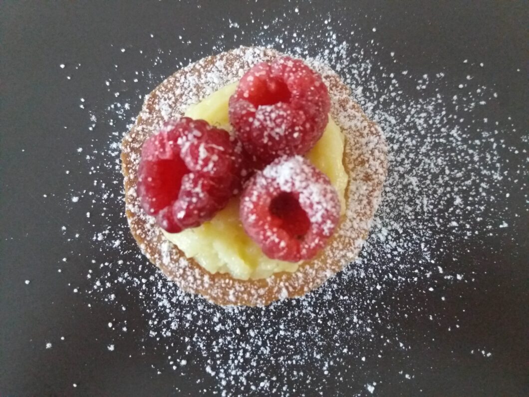 - ora potete comporre le vostre tartellette. Prendiamo i cestini di frolla e farciteli con la crema;