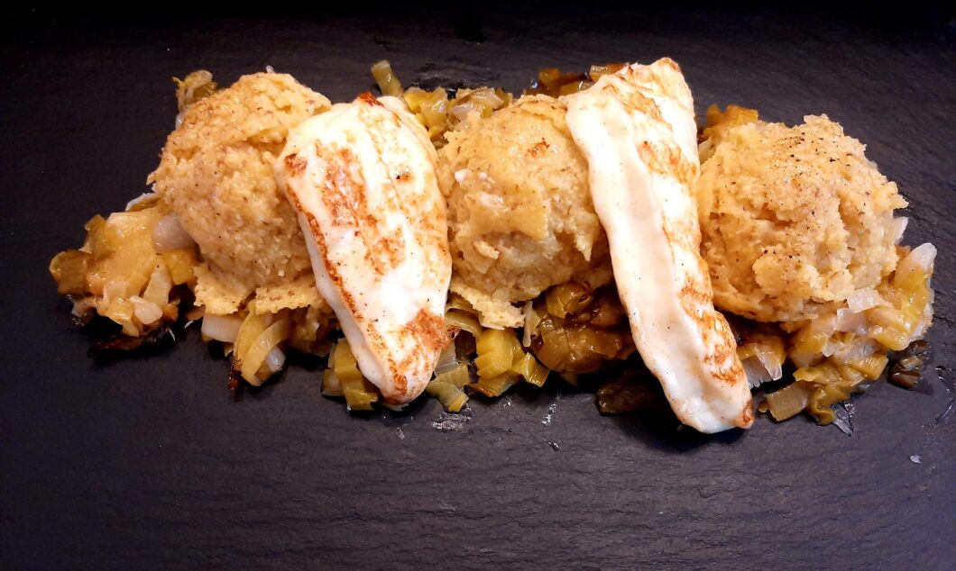 • passate alla composizione del piatta anche se….spazio alla fantasia. Io ho tagliato la tosella in quattro triangoli che li ho alternati alle nostre palline di polenta. Le verze hanno fatto da base a quando gustoso piatto.