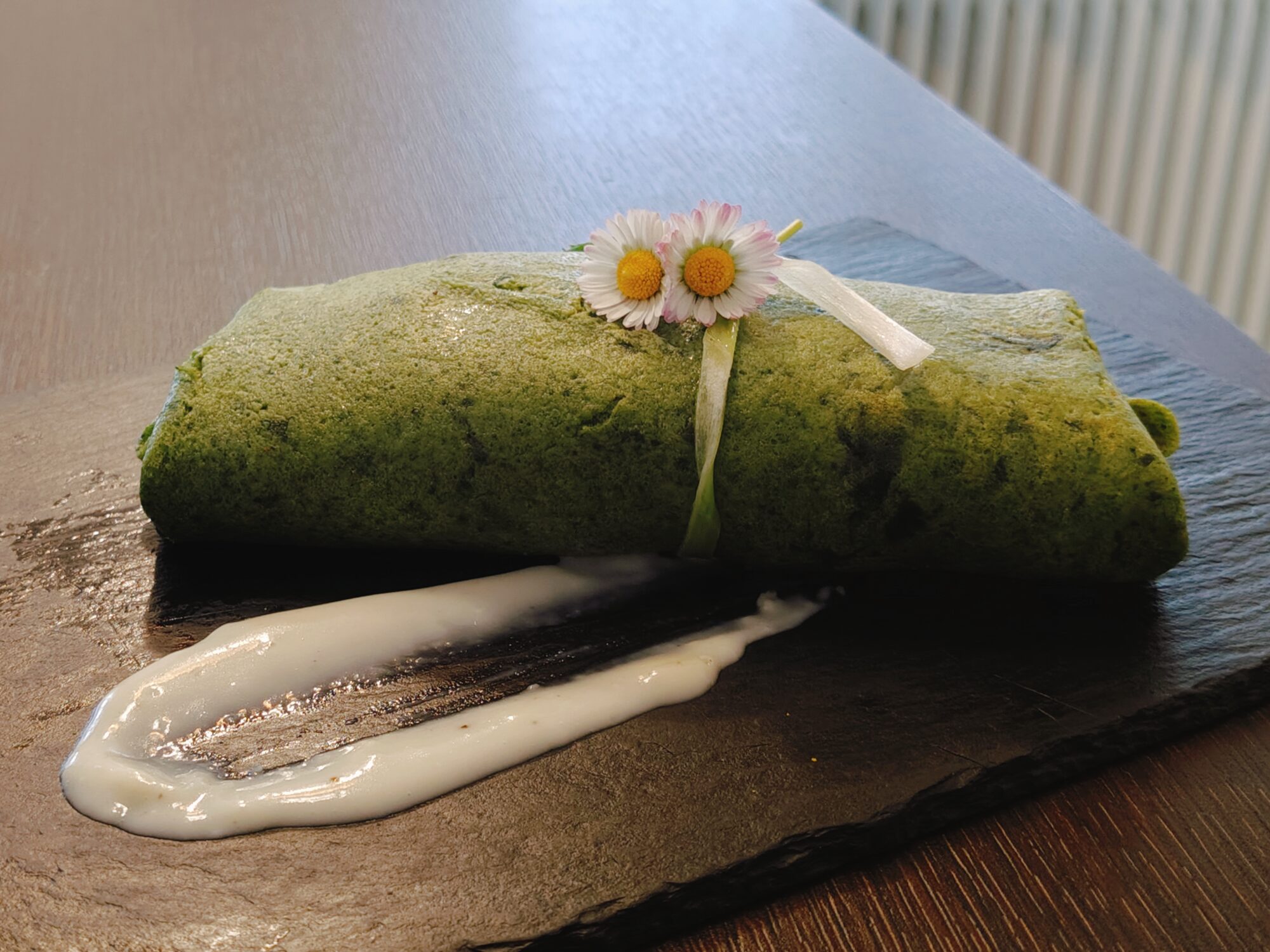 - scaldate una padella di 20 cm di diametro, imburratela leggermente, versate un mestolino di composto verde e roteare la padella in modo che il tutto si sparga in maniera uniforme. Cuocete circa un minuto per parte. Proseguite fino ad esaurimento del composto;