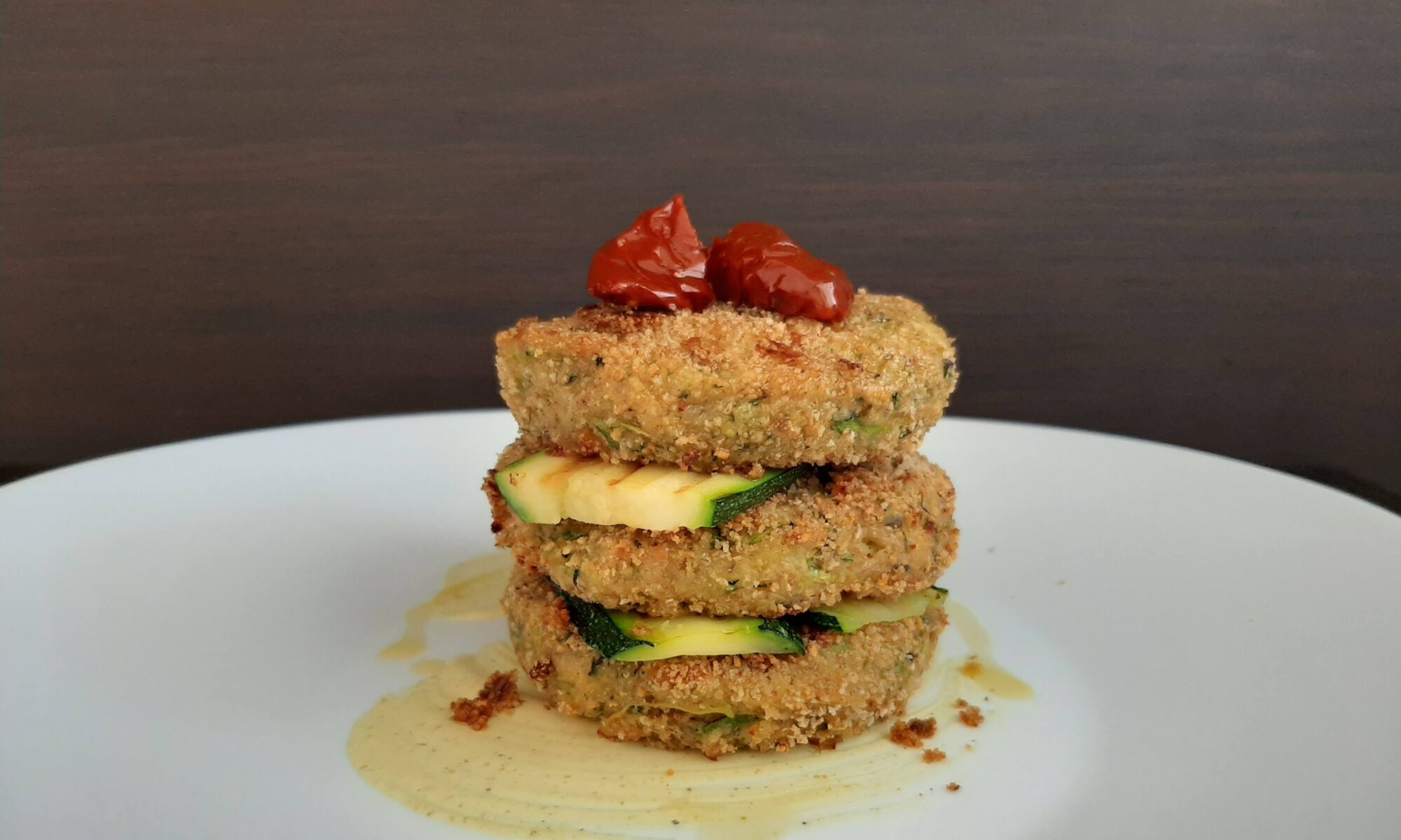 Con un cucchiaio schiacciate e appiattite, poi sollevate il coppapasta, infine capovolgete il burger; - vi consiglio di cospargere ancora di pangrattato la superficie. Cuocete in padella con un generoso filo d'olio, 3/4 minuti per lato oppure in forno a 180° per 10 minuti per lato.Servite caldi con una spolverata di pepe.