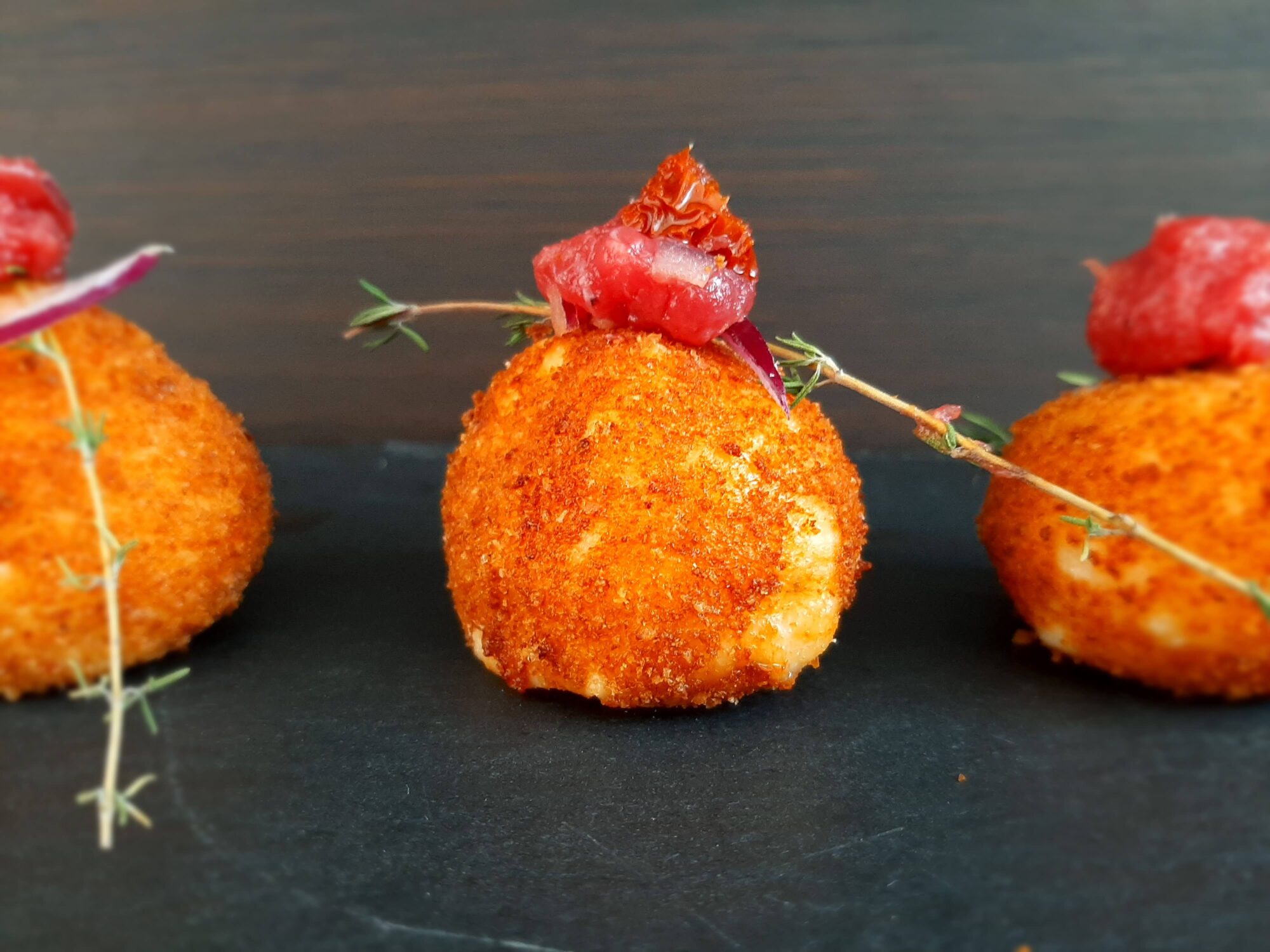 • cuocere le polpette in olio di semi di girasole bollente, scolatele su carta assorbente e servitele. Io ho completato il piatto con della tartare e cipolla rossa.