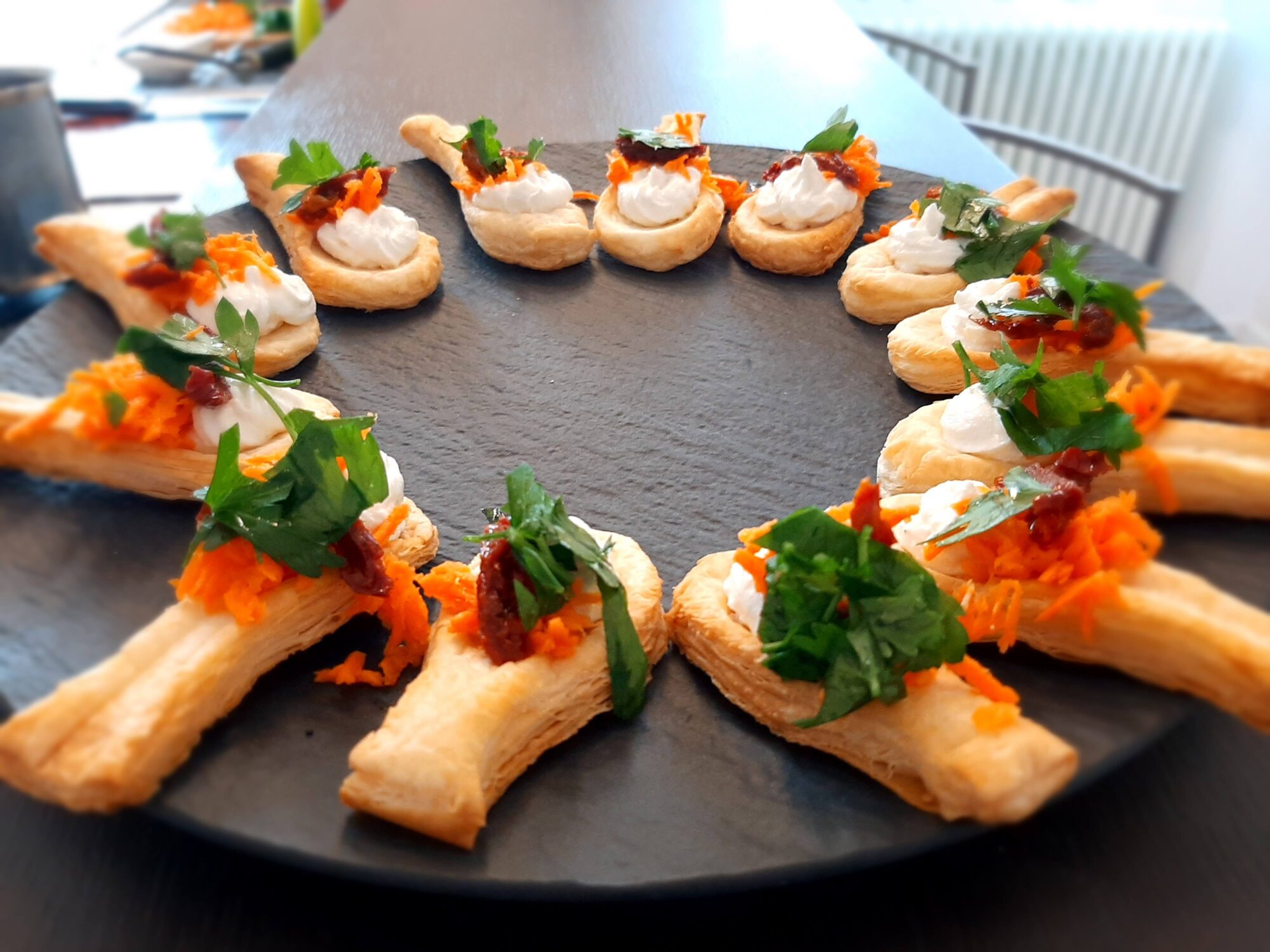 - con l’aiuto di una sac à poche mettete la crema che appoggerete sul vostro cucchino, terminate con le vostre guarnizioni.