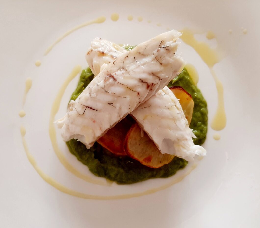 - a fine cottura del branzino ponetelo su un piatto e con l’aiuto di un coltello e una forchetta ricavate quattro filetti (facendo attenzione a togliere le spine e la pelle);