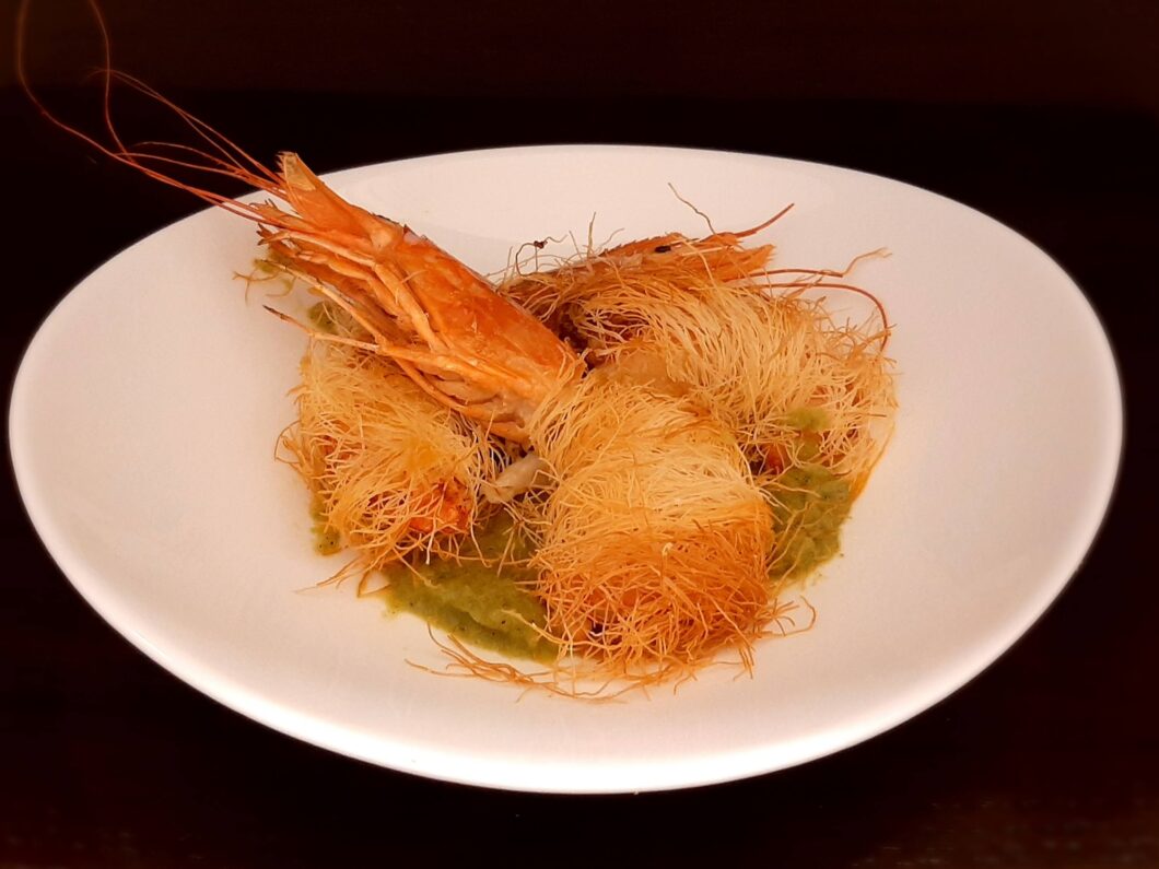 - con il forno precedentemente riscaldato mettete i vostri gamberoni con pasta Kataifi su una carta da forno e cuocete a 180° per circa 10-15 minuti. I gamberi si cuociono velocemente, il tempo che la pasta kataifi prenda colore e diventi bella dorata.