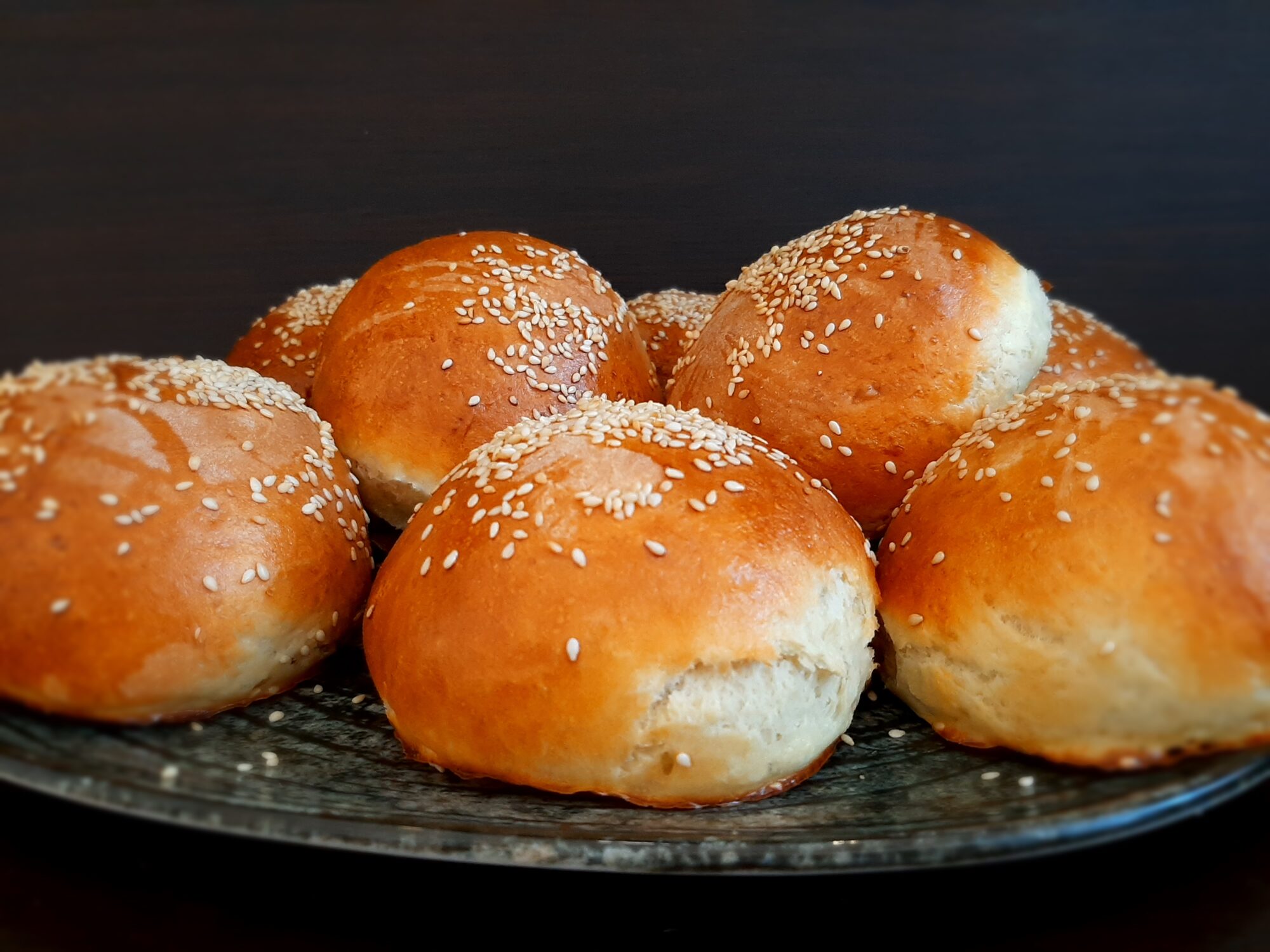 • trascorso il tempo (vedrete che le vostre pagnotte si saranno gonfiate bene) spennellate con un po’ di latte e uovo. Coprite con semi di sesamo;