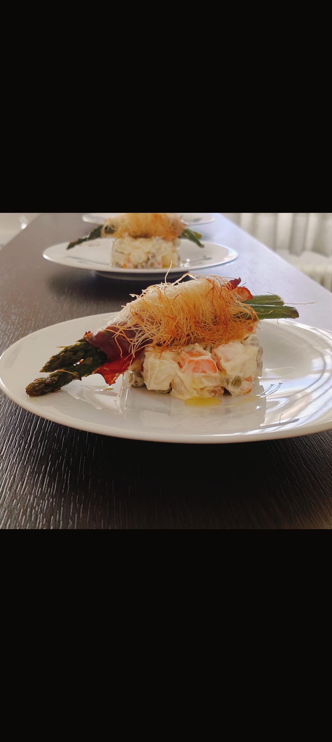 - adagiate i vostri asparagi sopra la maionese (che io ho servito mettendola prima in un coppapasta per darle una forma)