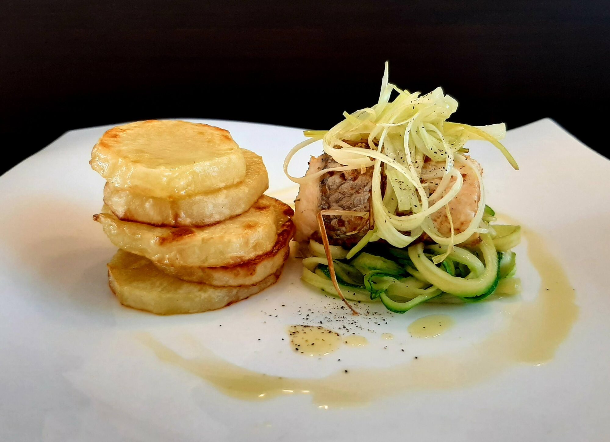 Involtino di branzino, zucchine e porro