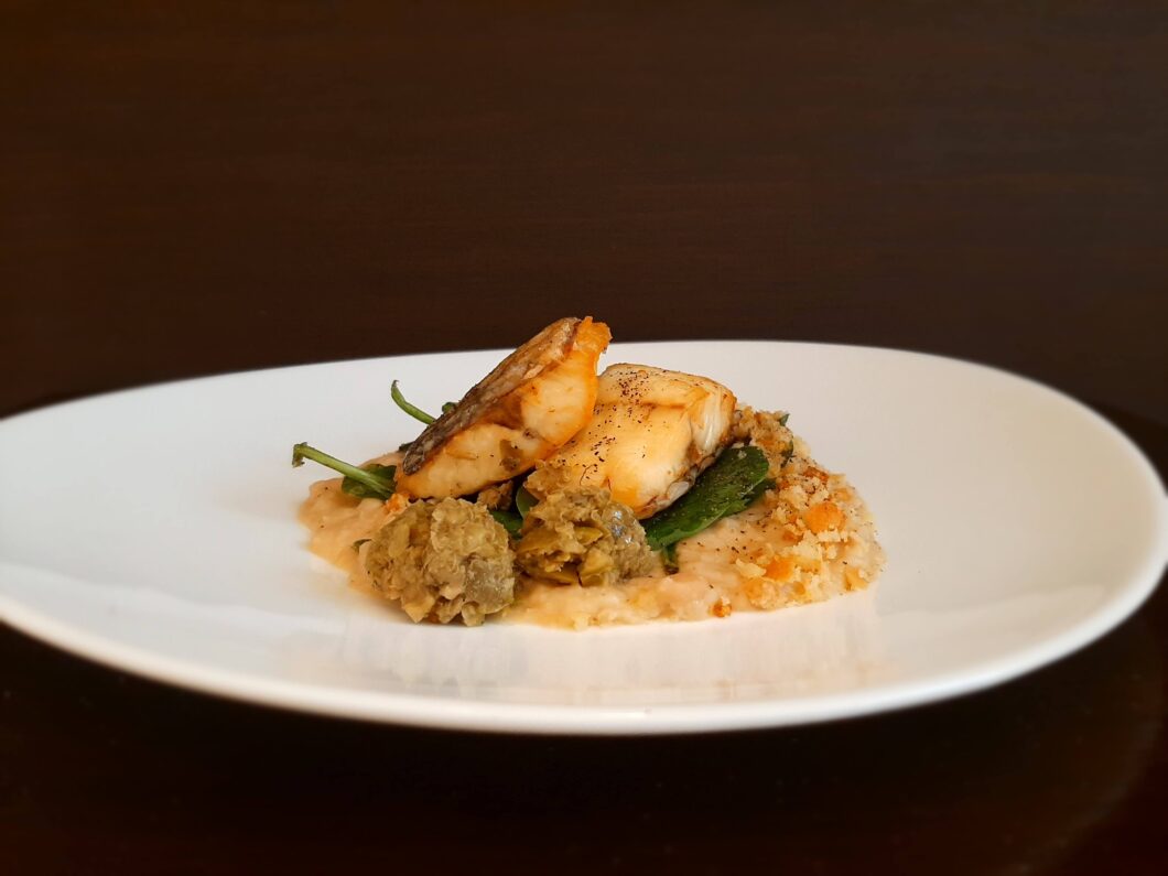 - quando i vostri ingredienti sono tutti pronti passate all’impiattamento. Alla base mettete la vostra rema ai cannellini (se preferite potete scaldarla in un pentolino o a bagno maria), ponete sopra gli spinacini precedentemente conditi, proseguiti con due pezzettini di branzino, terminate con il crumblem che non piatto non ha un posto preciso ma …vi consiglio di metterlo in modo che copra tutti gli ingredienti, dandogli quel gustoso croccante;