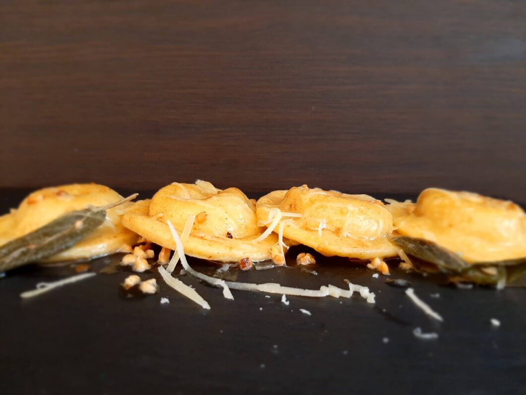 • mentre l’acqua bolle mettete in una padella il vostro burro a sciogliere, aggiungete salvia e le vostre noccioline che tosteranno assieme al burro;