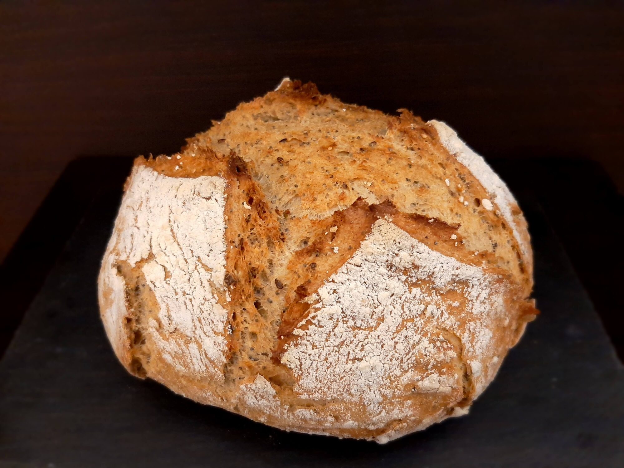 - terminata la cottura, togliete il pane dal forno, toglietelo dalla cocotte e mettetelo a raffreddare su un’apposita griglia.