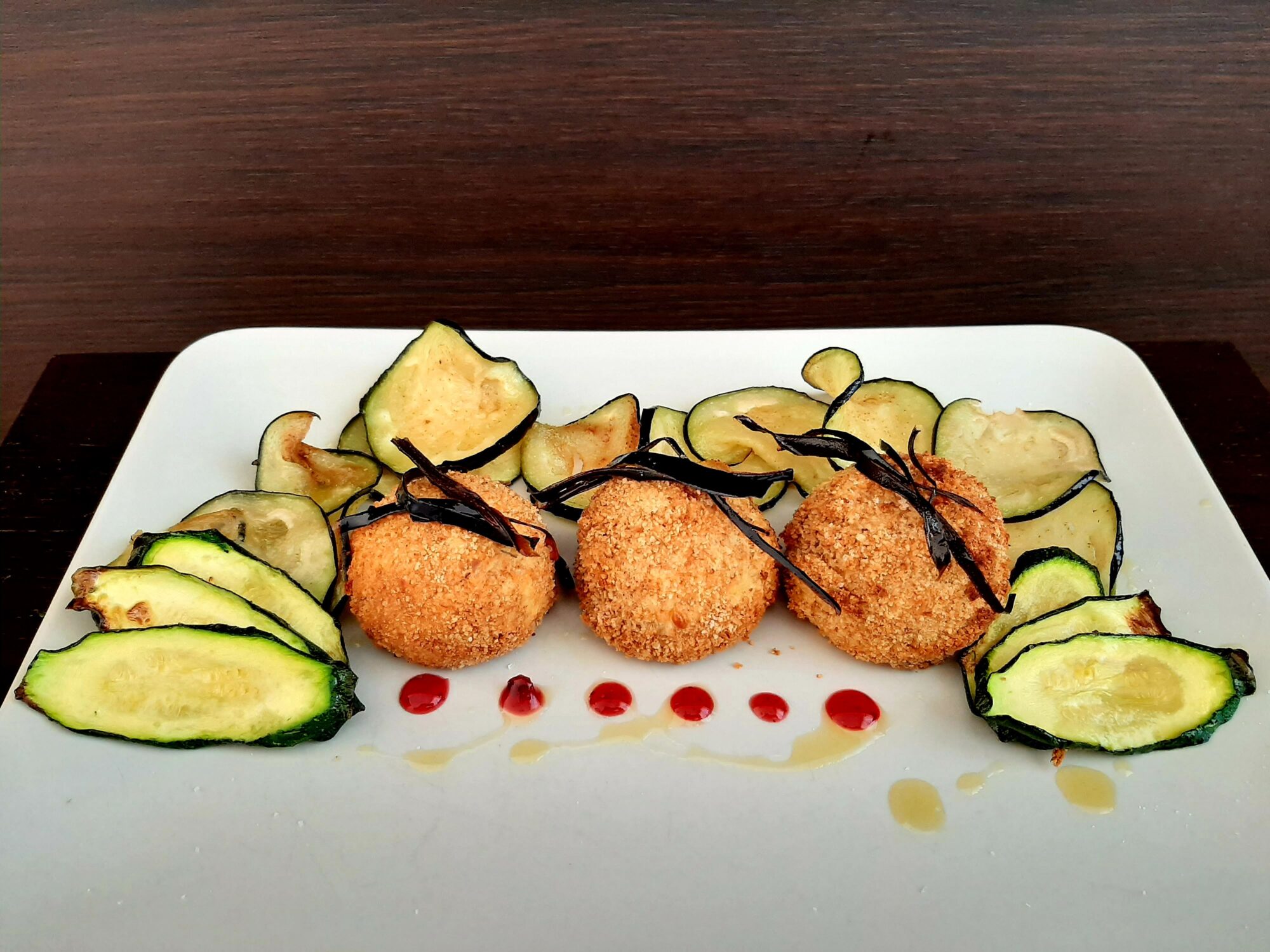 - riponete le polpette su una teglia. Coprite con un filo di olio e fate cuocere per 15 minuti a 180°. Servirà solo il tempo necessario per creare la croccantezza visto che l’orata è stata precedentemente cotta;