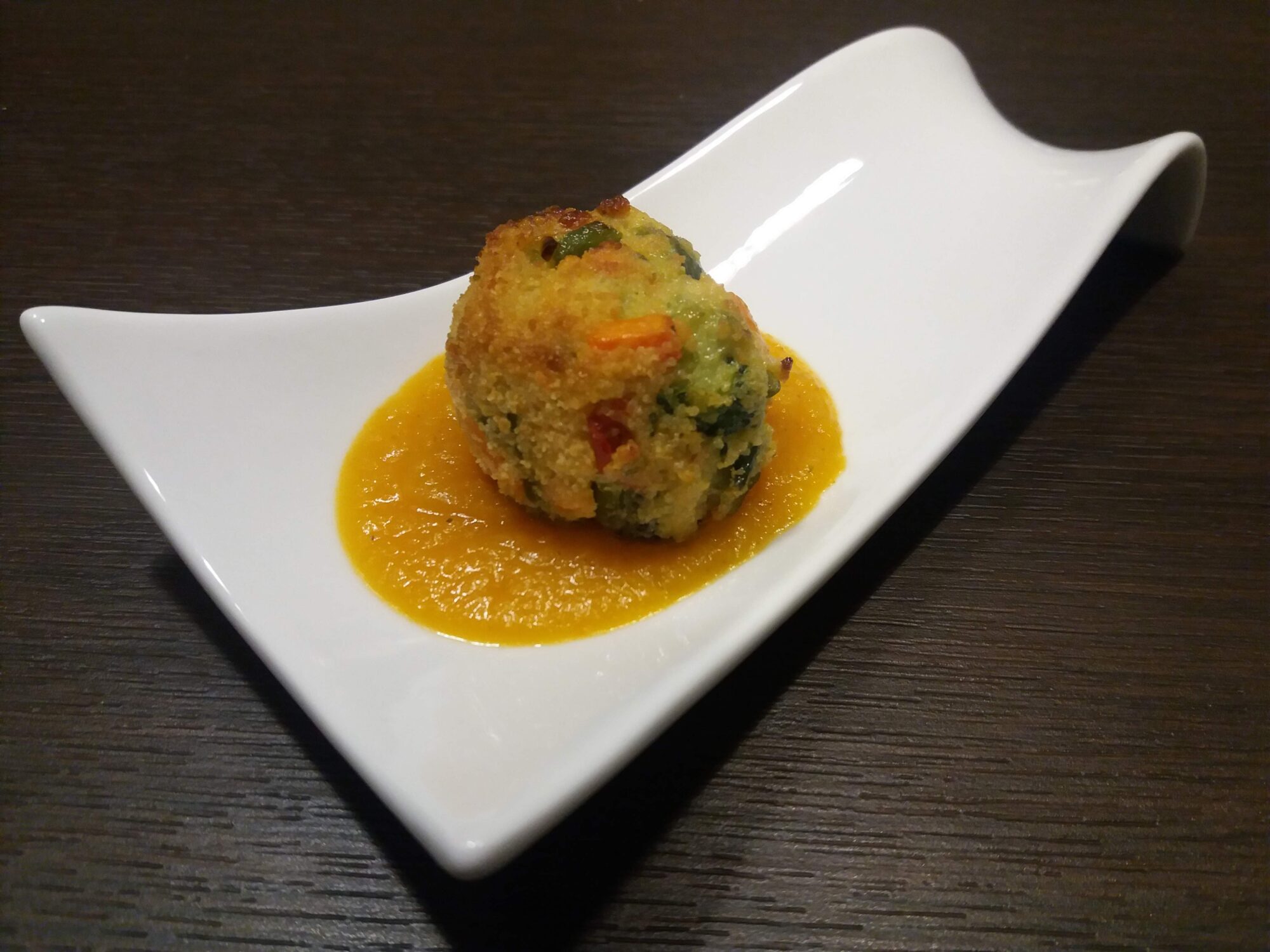 Polpette di verdure su crema di zucca
