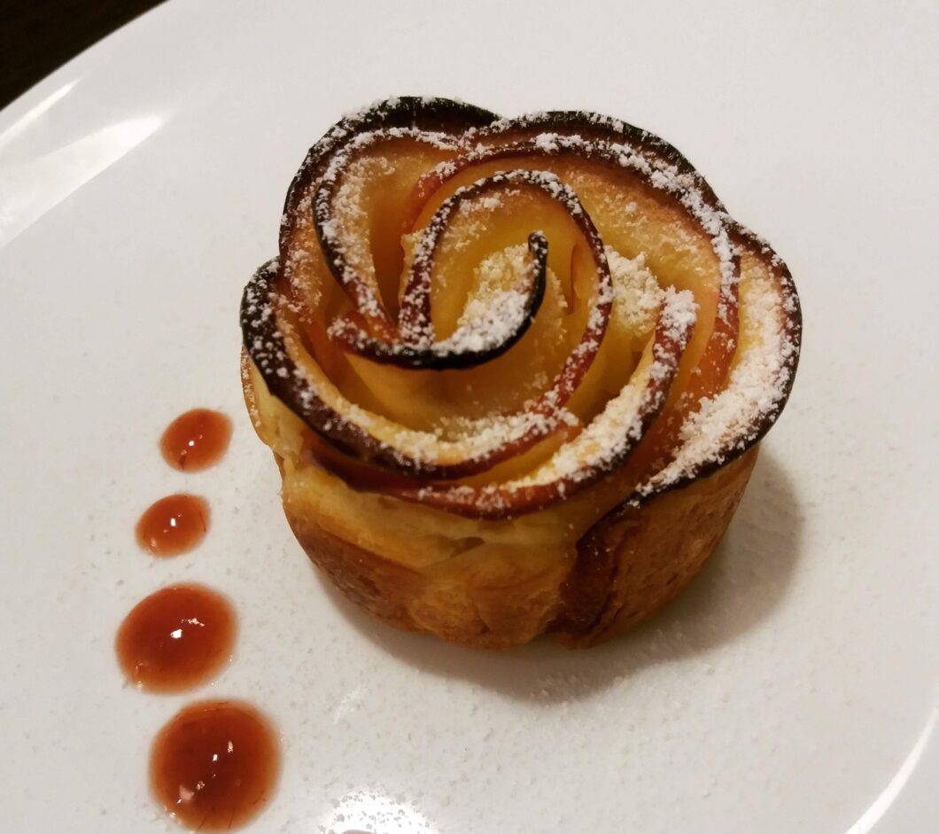 - disponete le rose di mela in pirottini da muffin leggermente imburrati e infornate a 180°C per 20 minuti;