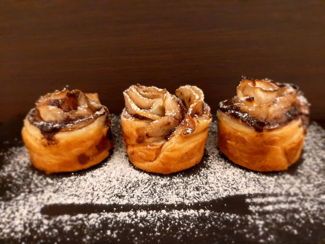 Roselline di sfoglia con pere e nocciolata