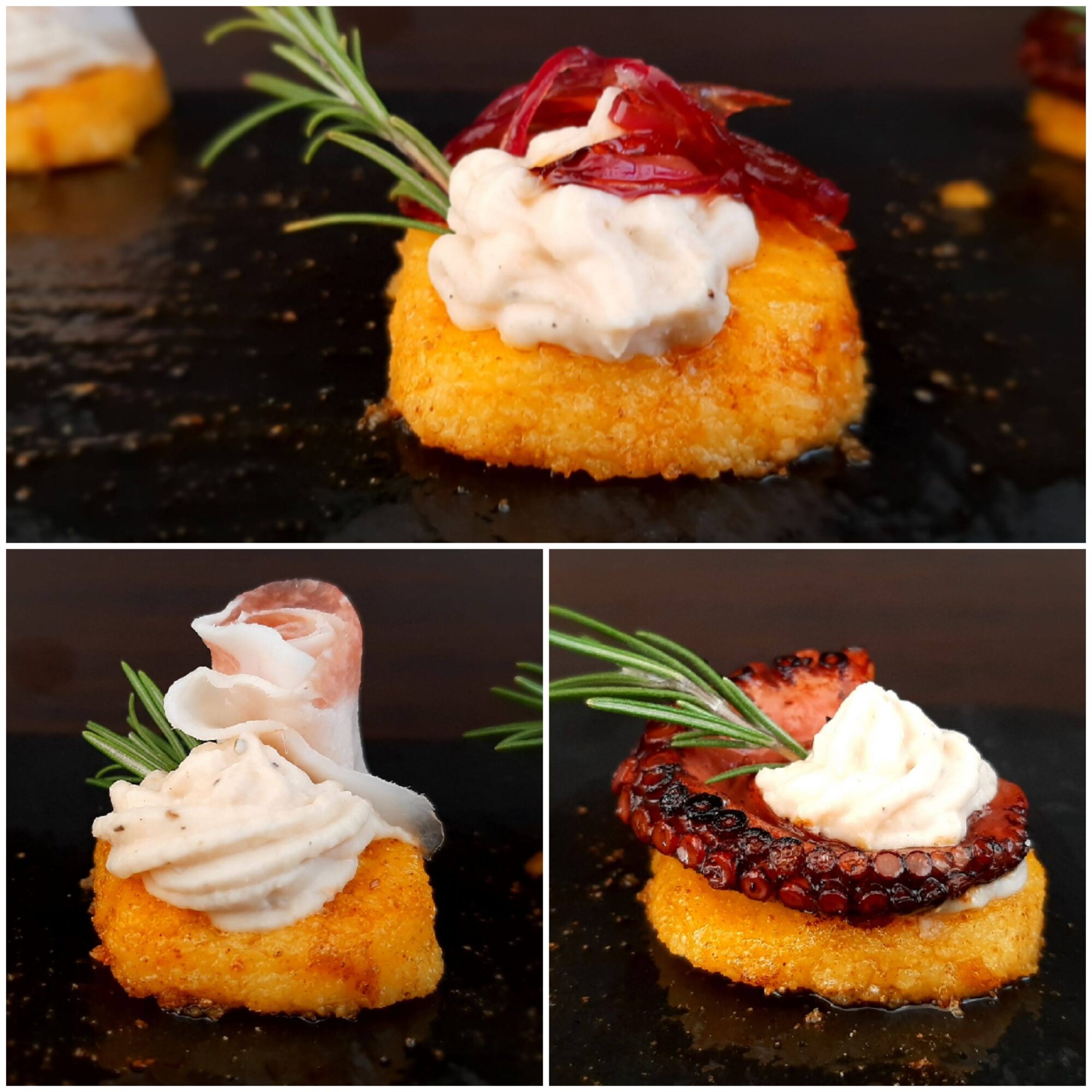 Nella ricetta che segue troverete le tre alternative per i vostri menù: la versione con il lardo, quella per i vegetariani con la cipolla caramellata e infine per gli amanti del pesce con il polpo grigliato.