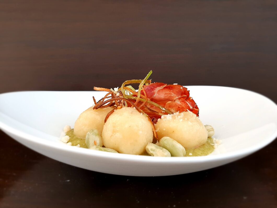 - portate l’acqua a bollire, salate e fate cuocere i vostri gnocchi (saranno pronti quando verranno a galla). Componete il piatto mettendo alla base la vostra crema, sopra gli gnocchi e guarnite con i porri, le fave che avete tenuto da parte e lo speck. Quando aprirete i vostri gnocchi avrete la sorpresa della fondina che si scioglie e sarà musica per il vostro palato.