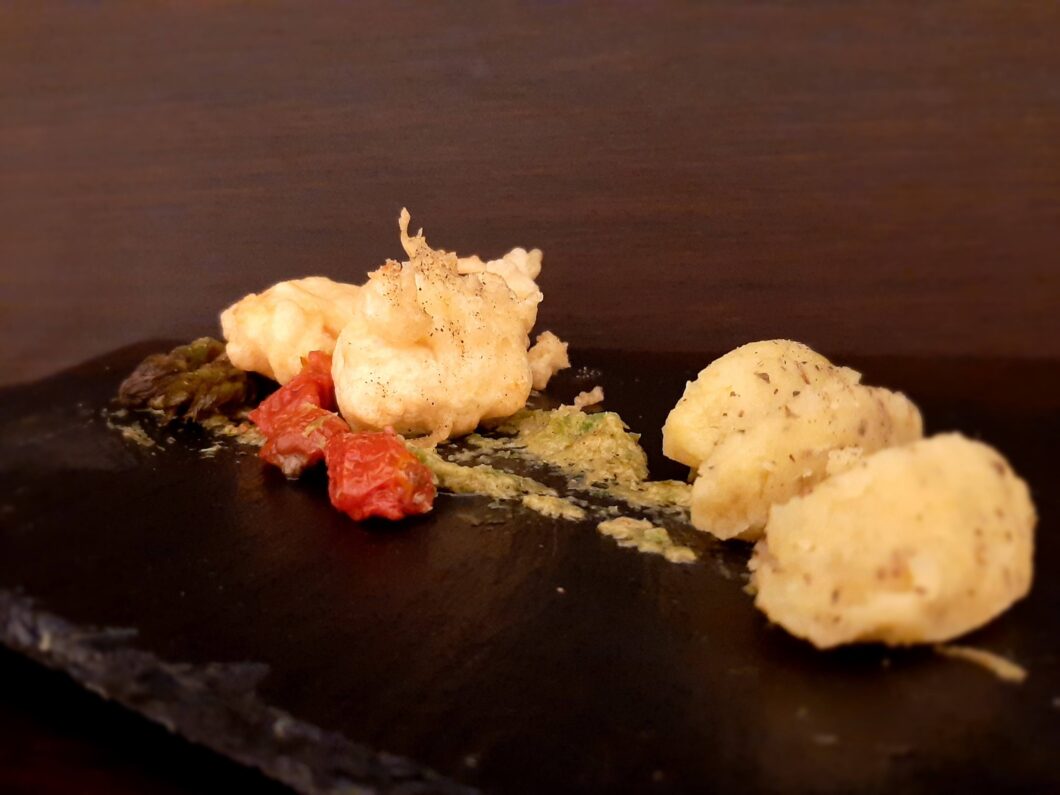 - sbattete bene l’uovo, poi aggiungere la farina ed infine l’acqua frizzante: è importantissimo che l’acqua sia gelida, altrimenti non si crea lo shock termico che permette di ottenere una buona tempura;