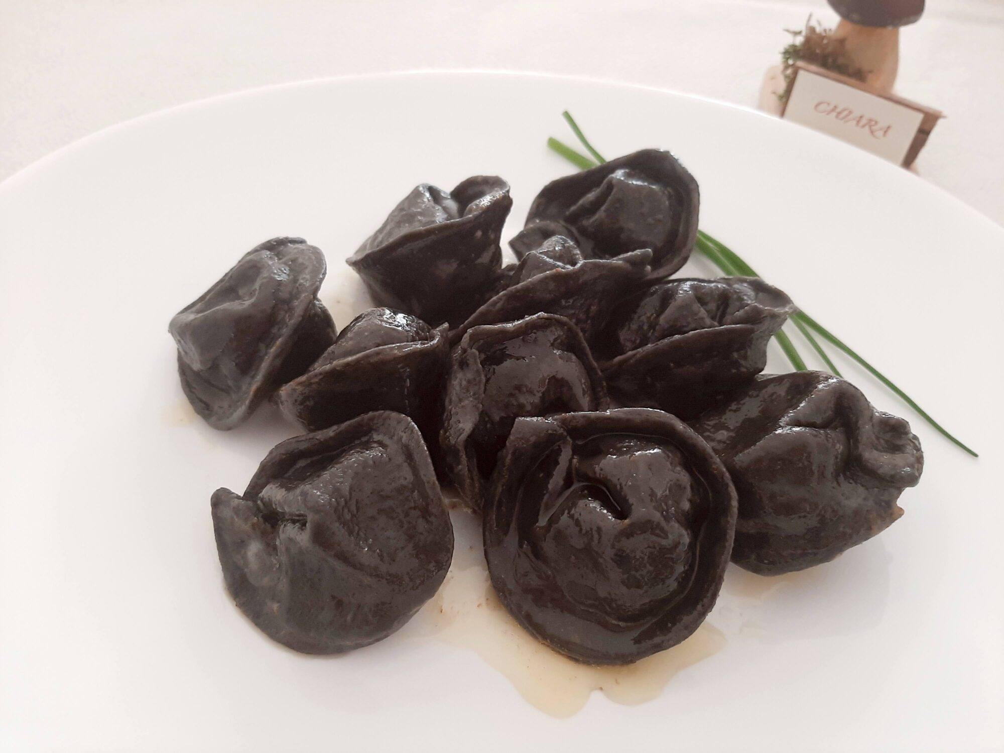 - versate su una spianatoia la farina, fare la fontana e nel centro aggiungere le uova, il cucchiaino di olio e il nero di seppia;