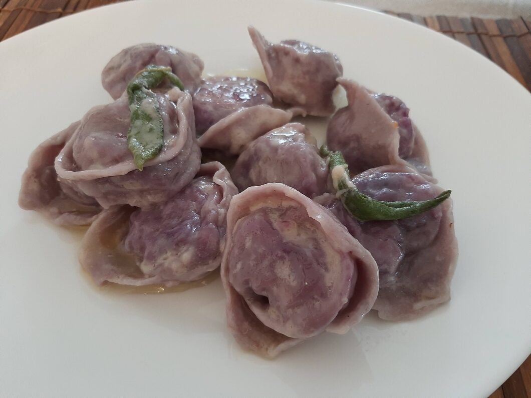 Se volete fare due versioni di tortelloni, viola e rosa, tenete un po’ di acqua viola da parte, aggiungete un cucchiaino di limone, in questo modo il viola diventerà più chiaro e potrete avrere due gradazioni differenti.